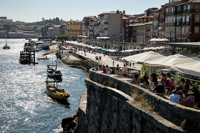 Zona llena de restaurantes, tiendas y bodegas donde tomarte una copita de oporto y ver las vistas de las coloridas casas de la Ribeira de Oporto.